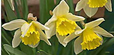 from top left: California lilac, columbine, daffodil, iris |