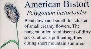 signs describe plant species along the trail. Most of the plants had
